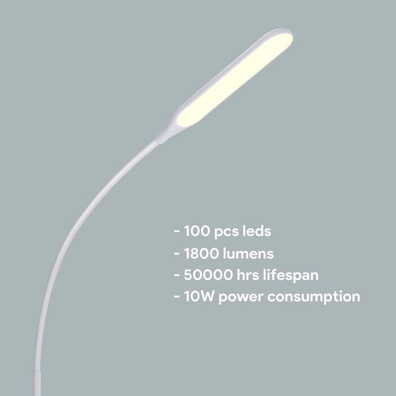 Stylische Stehlampe der Marke Gladle. Sie können die Stehlampe einfach biegen um Sie ideal für sich einzustellen. Zudem ist sie dimmbar und in der Farbtemperatur veränderbar. Die Lampe sorgt für angenehm helles Licht und ist sehr langlebig. 100 LEDs sorgen für flimmerfreies, blendfreies Licht. Die Lampe schaltet sich nach 1 Stunde von selbst ab.