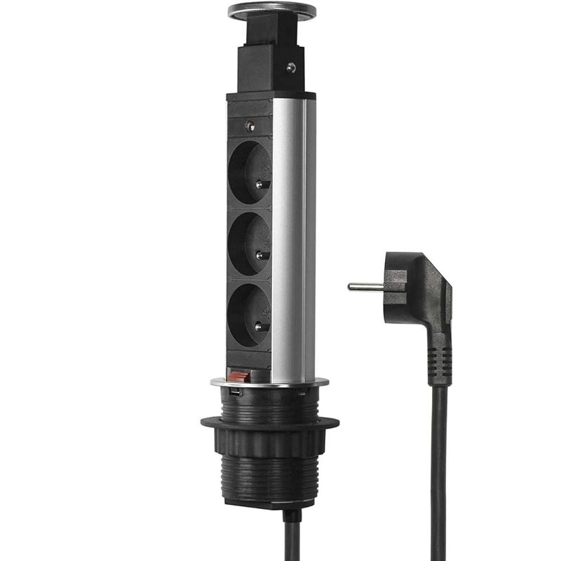 Tischsteckdose EL1053S-FR (3 Steckdosen, Versenkbar, 250Volt)