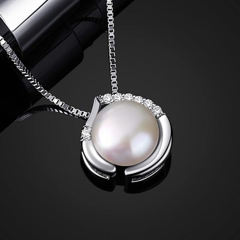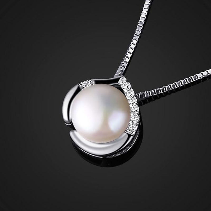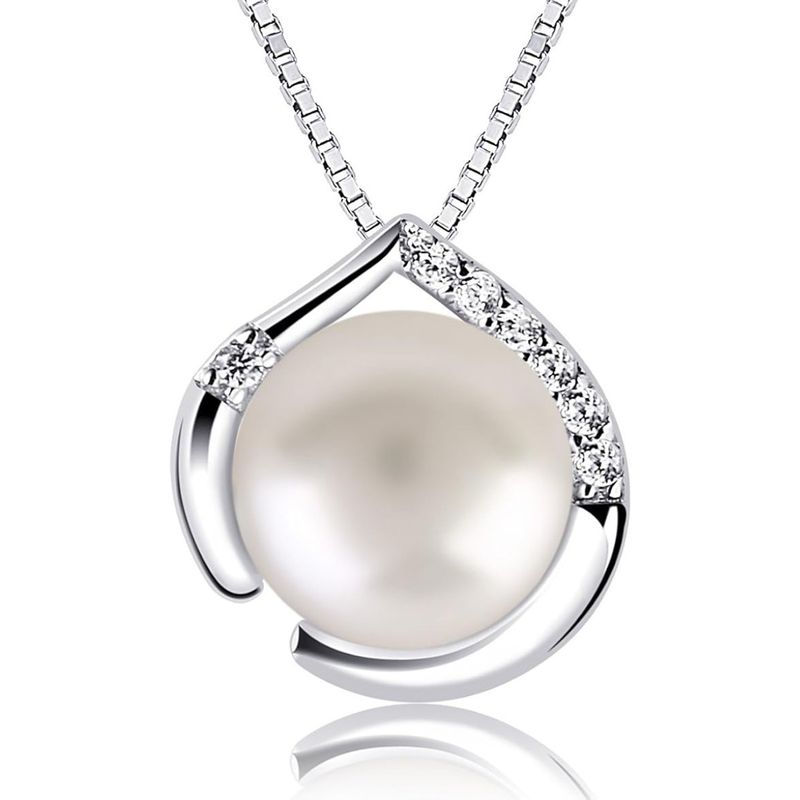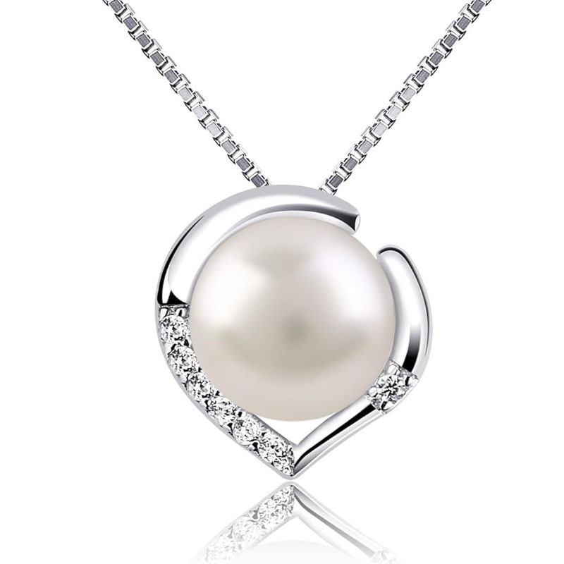 Herz Halskette 45cm 5A Zirkonia S925 3,1g Zuchtperle 12,2 mm x 11,8 mm inkl. Schmuckkästchen Geschenkidee Silberhalskette Kette