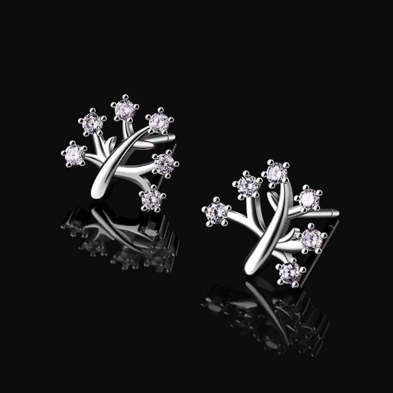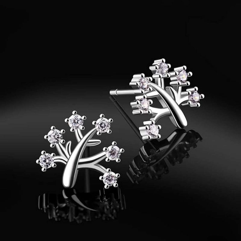 Ohrstecker Lebensbaum 925er Sterling Silber 5A Zirkonia 11 x 11 mm 1,7g Ohrringe Piercing Damen Geschenkidee Weihnachten