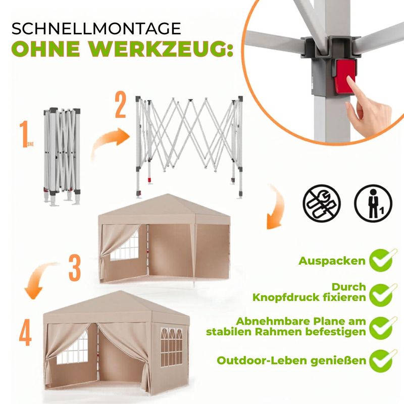 Gazebo mit Wänden Gartenzelt Outdoor UV Schutz Wasserfest Winterfest 3x3 mit Tragetasche
