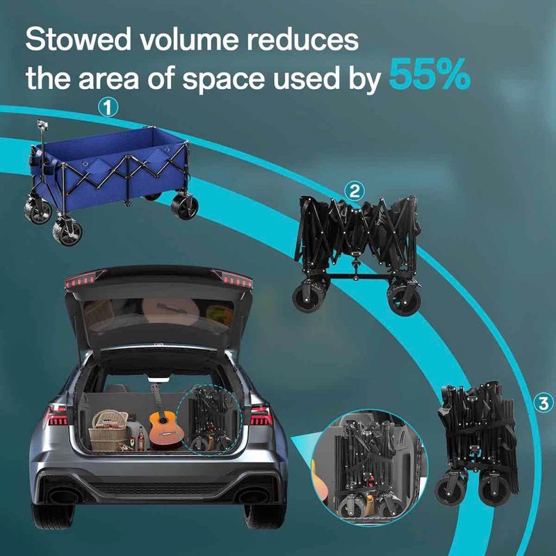 Dieser praktische und platzsparende Bollerwagenist der perfekte Begleiter für Ihren Familienausflug. Er kann ganz einfach zusammengefaltet transportiert werden und ist innerhalb weniger Sekunden wieder aufgebaut. Der 600D Oxford Stoff ist reißfest, durch die doppelte Nahtversiegelung wasserabweisend und UV-beständig.