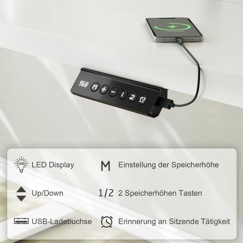 Höhenverstellbar Schreibtisch 160x70 USB Memory Timer Kindersicherung