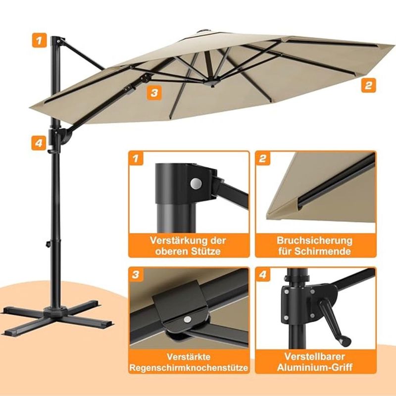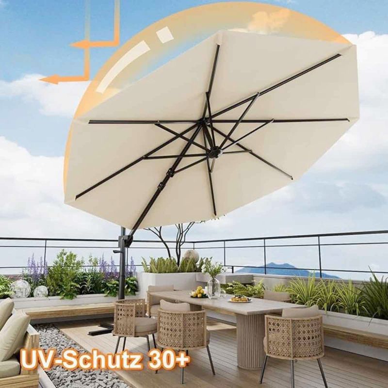 Ampelschirm Gartenschirm Sonnenschrim 8-eckig 360° Drehbar Neigbar Garten Balkon