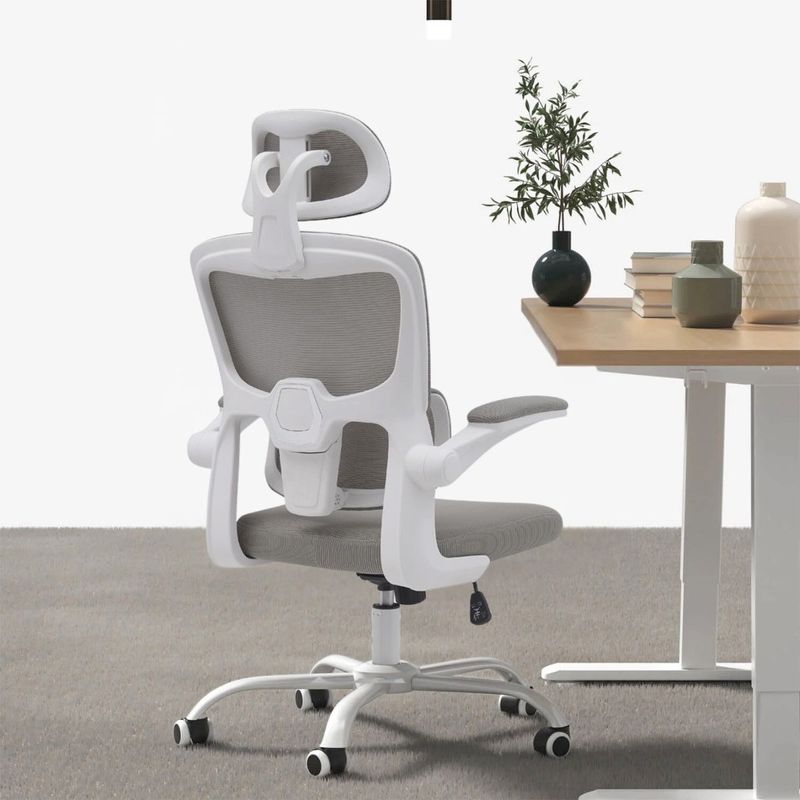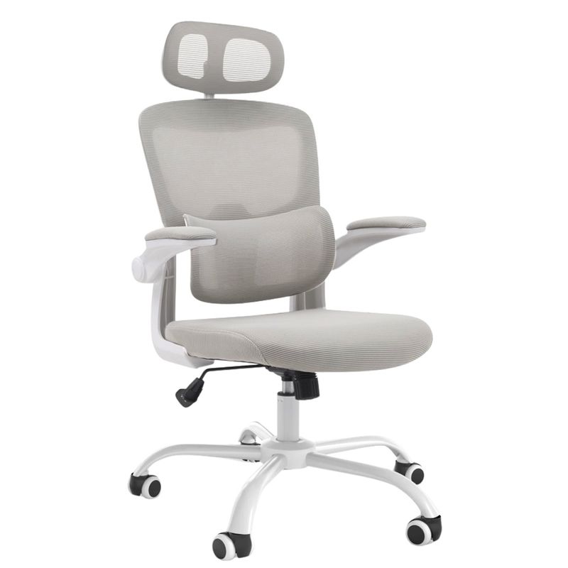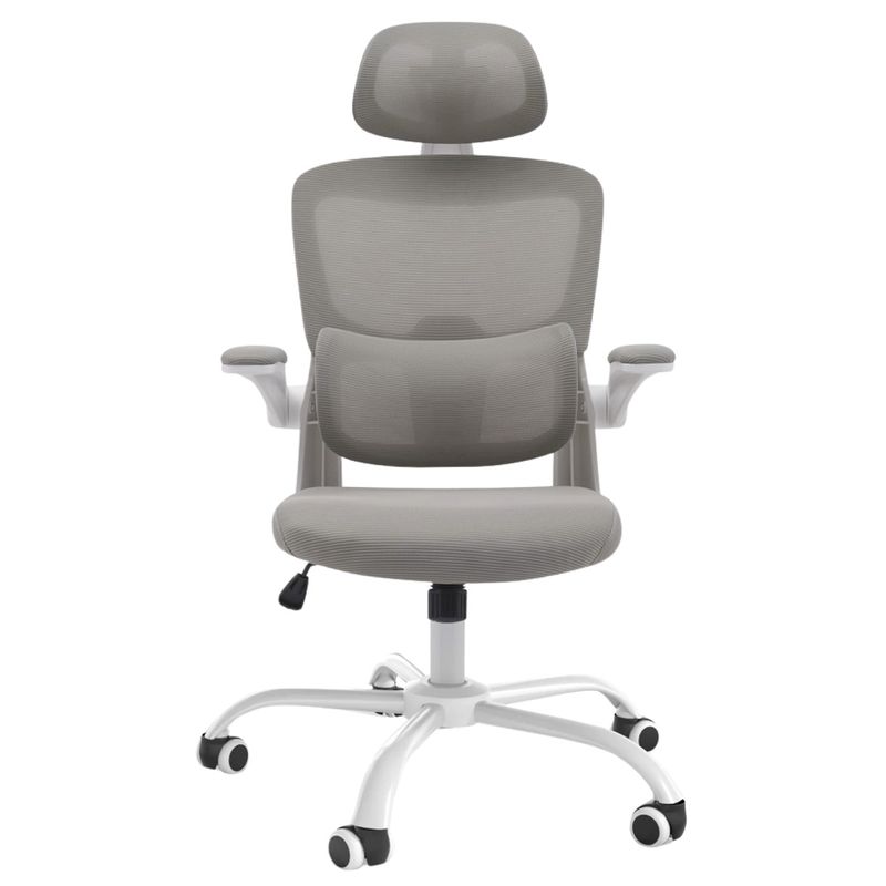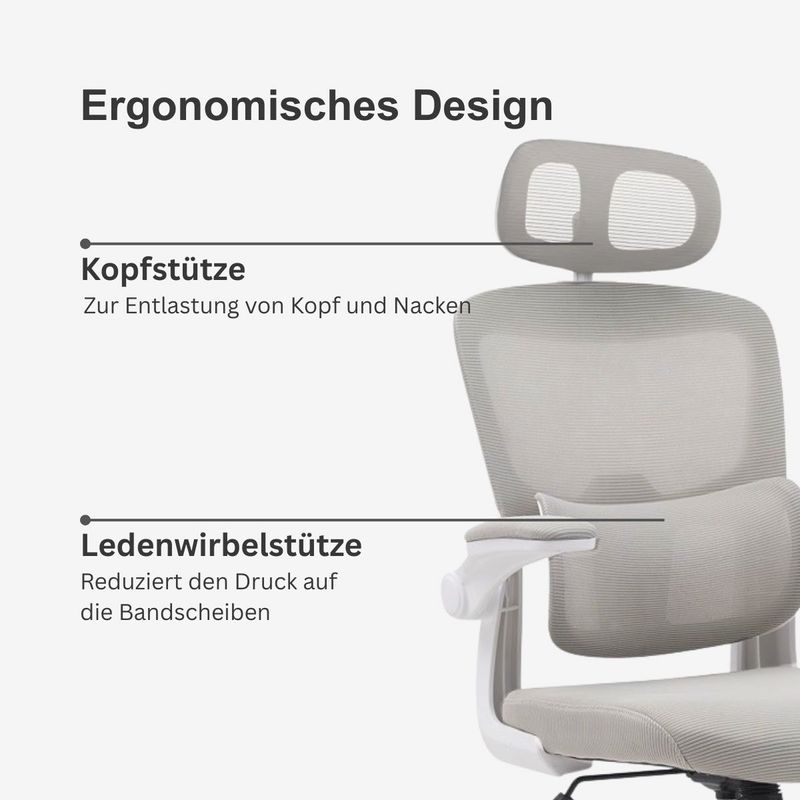 Bürostuhl Office Chair Schreibtischstuhl Ergonomisch Kopfstütze Lendenstütze Grau/Weiß