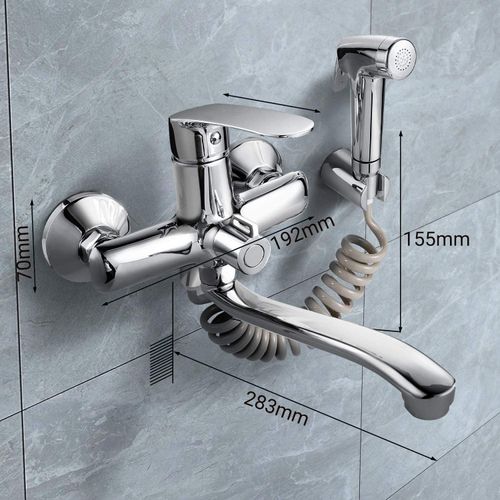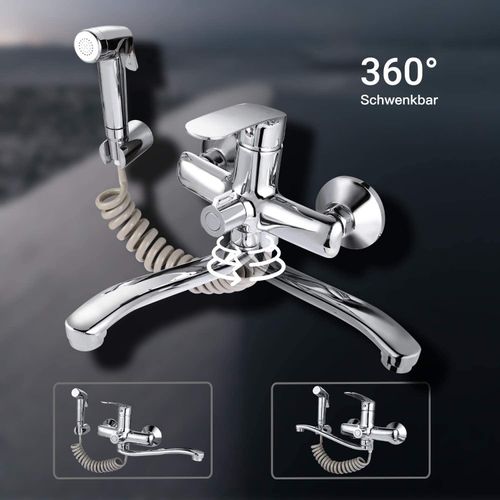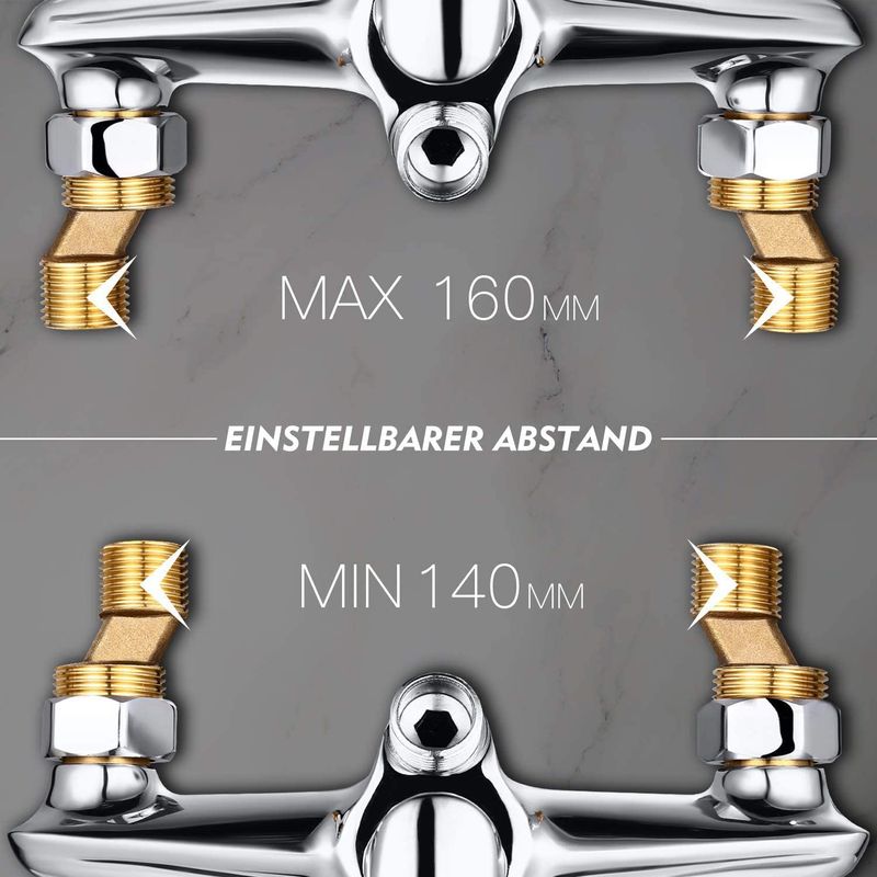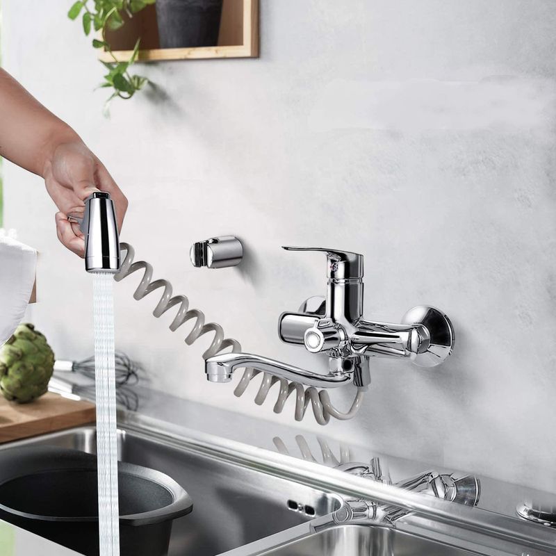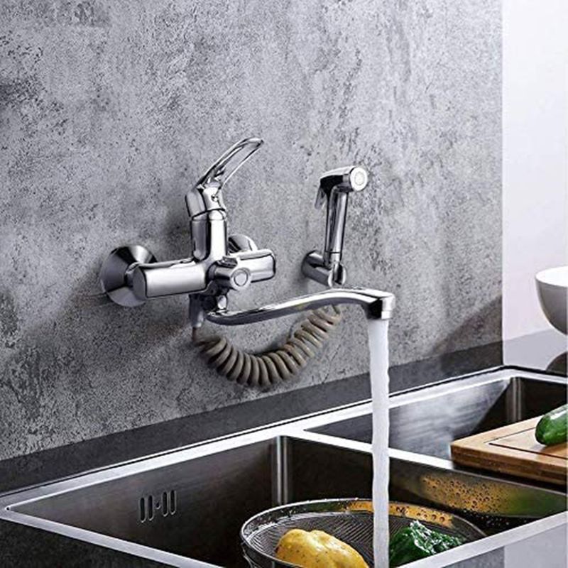 Wandmontierte Küchenarmatur mit 2 Strahlarten der Marke Dalmo. Diese einzigartige Armatur verleiht jedem Badezimmer oder jeder Küche eine besondere Note. Die Wandmontage schützt die Arbeitsplatte und das Waschbecken und sorgt für mehr Platz. Die mehrschichtige Oberfläche der Armatur ist glänzend und rostbeständig. Der 360° schwenkbare Auslauf und die zusätzliche Düse ermöglicht eine flexible Reinigung. Der verbaute Filterperle spart bis zu 30% Wasser. Zwei-Loch-Wandmontage, inklusive Montageset und verständlicher Montageanleitung. Mit exzentrischen S-Anschlüssen. Die beiden Befestigungslöcher können von 140 mm bis 160 mm eingestellt werden.