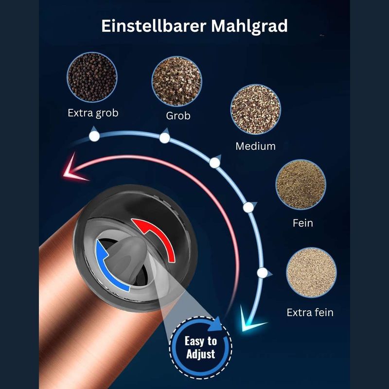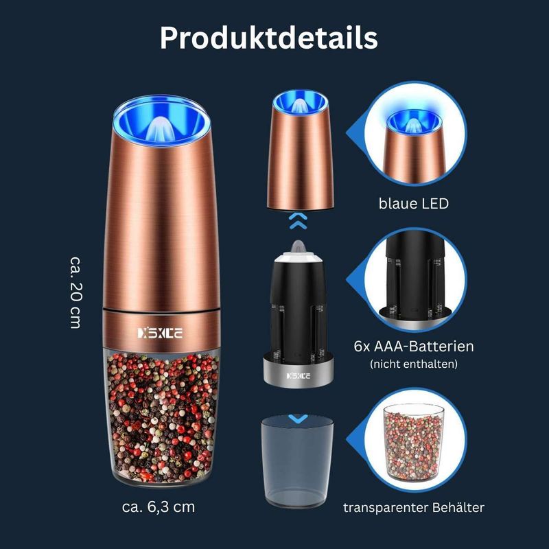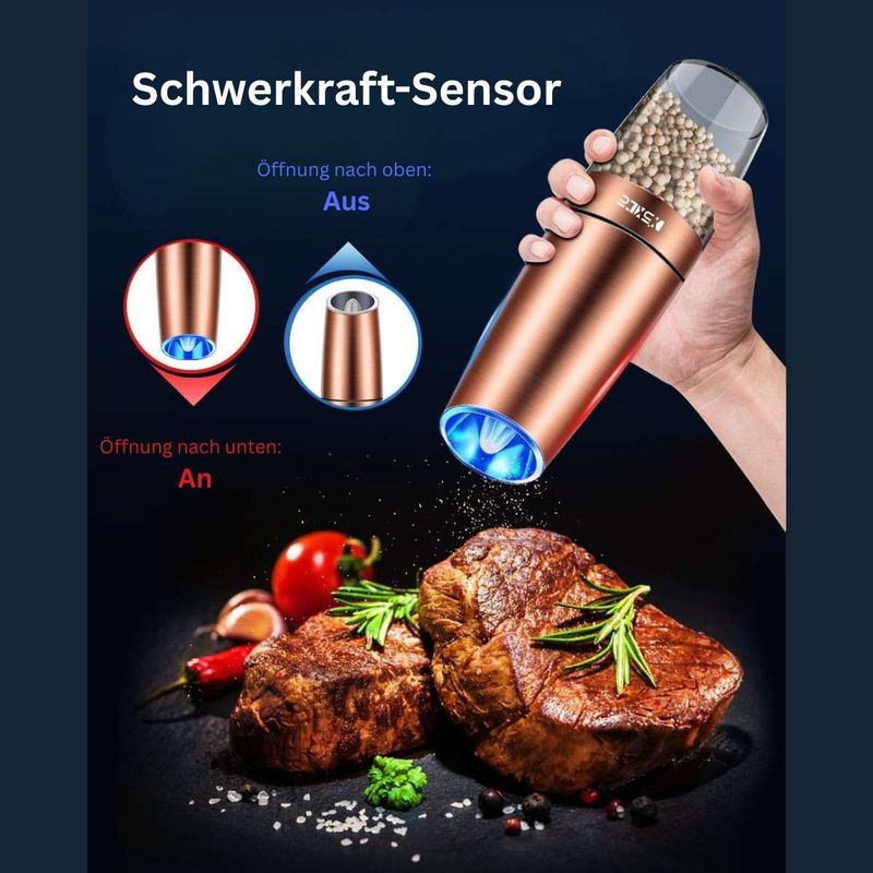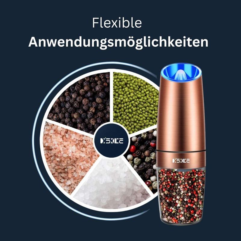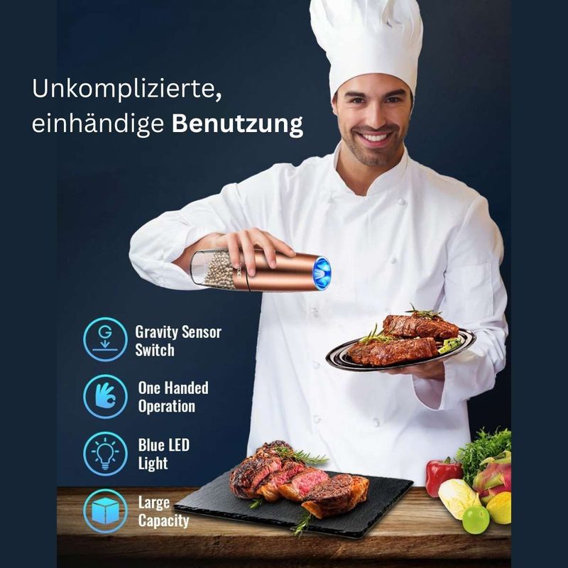 Diese edel anmutende, elektrische Mühle vereint Funktionalität, Komfort und Stil in einem praktischen Küchenhelfer. Dank des Schwerkraft-Sensors startet die Mühle automatisch ohne Knopfdruck, indem sie umgedreht wird. Mit dem einstellbaren Mahlwerk können Sie den Mahlgrad für Ihre Gewürze individuell anpassen und so jedes Gericht perfekt abschmecken. Das batteriebetriebene Design ermöglicht flexiblen Einsatz zu Hause, bei Partys oder sogar im Freien. Die transparente Acrylbasis zeigt den Füllstand an, während das sanfte blaue LED-Licht präzises Dosieren erleichtert. Ob Salz, Pfeffer oder andere Gewürze, diese Mühle ist ideal für Küchenliebhaber und auch eine perfekte Geschenkidee!