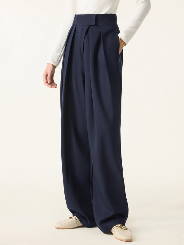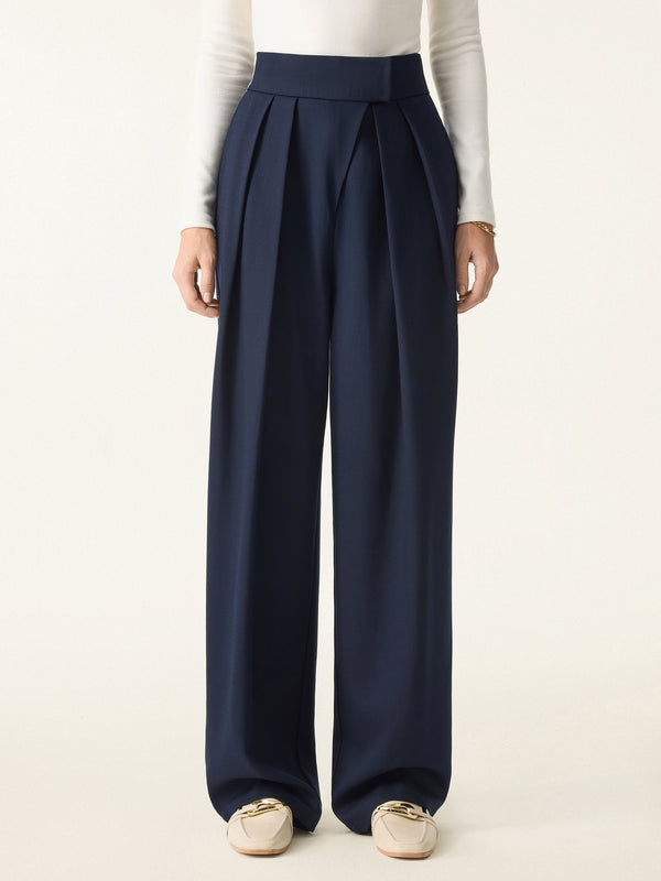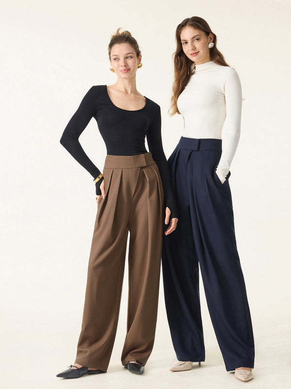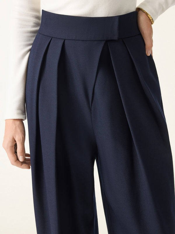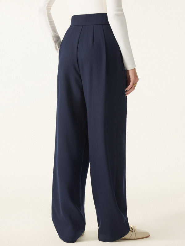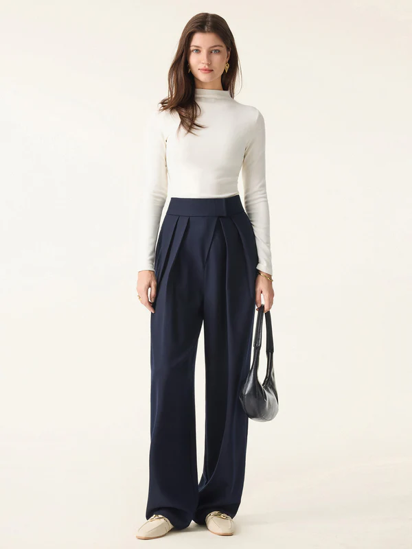 Diese High-Rise-Hose schmeichelt mit einem schmalen Beinausschnitt, der Ihre Beine optisch verlängert. Der breite Bund und das eingesteckte Design verleihen ihr Eleganz, während der schräge Hosenschlitz und die Taschen sie praktisch und modern machen.