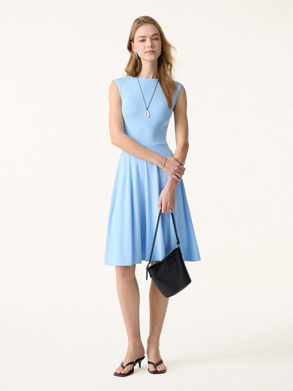 Ein super bequemes Kleid, das dennoch elegant wirkt, mit einem schmalen U-Boot-Ausschnitt und breiten Schultern für optimalen Halt. Der abgerundete Saum sorgt für eine schwungvolle Silhouette, praktische Taschen und herausnehmbare BH-Einlagen bieten Komfort und Halt.