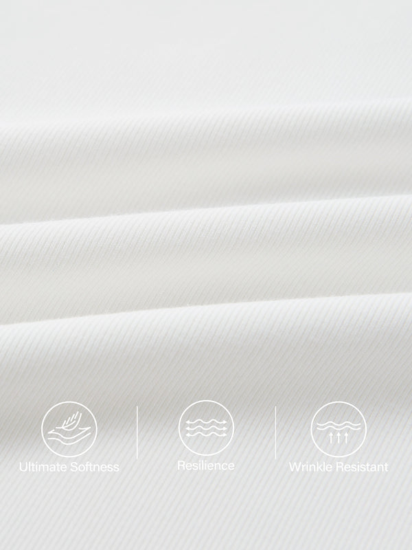 Aus weichem und dehnbarem, mattem Rippenstoff gefertigt, ist es ebenso zeitlos wie bequem. Es schmiegt sich an Ihre Figur und fühlt sich praktisch schwerelos an.