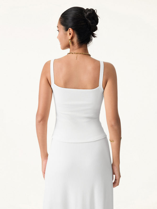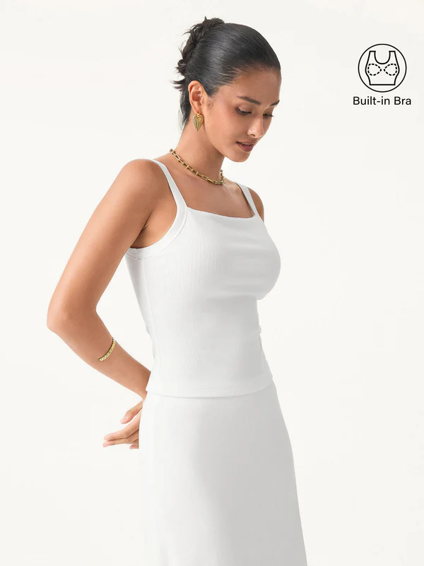 Das Top überzeugt mit einem geraden Ausschnitt und breiten Trägern für einen klaren, modernen Look. Gefertigt aus elastischem Pointelle-Strick mit herausnehmbaren BH-Polstern vereint es weiche Haptik, angenehmen Halt und mühelosen Alltagscharme.