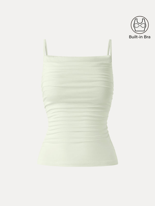 Dieses Spaghetti-Top mit seitlichen Raffungen sitzt perfekt. Verstellbare Träger ermöglichen eine individuelle Passform, und herausnehmbare BH-Polster sorgen für zusätzlichen Komfort – perfekt für den Alltag mit einem weichen, figurformenden Touch.