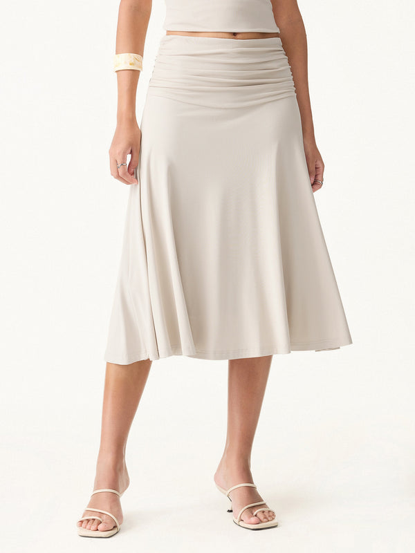 OGLmove - Eco-SkinKiss® Fließender, seitlich geraffter Midirock in A-Linie 250620-2536W33