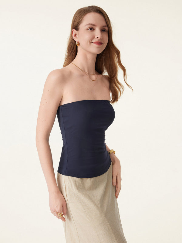 Elegant, sicher und bereit für den Sommer. Mit herausnehmbaren BH-Polstern und einem versteckten Anti-Rutsch-Gummiband im Inneren, das für sicheren Halt sorgt. Es ist schmeichelhaft und perfekt für warmes Wetter – Sie werden es nicht mehr ausziehen wollen.