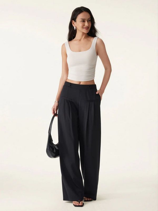 Diese Hose ist Ihre mühelose Antwort auf eleganten Komfort. Die mittelhohe Passform und der elastische Bund sorgen für bequemes Tragen, während das weite Bein und die Biesendetails eine luftige, fließende Silhouette kreieren. Gürtelschlaufen und Taschen sorgen für Struktur und Funktionalität im Alltag.
