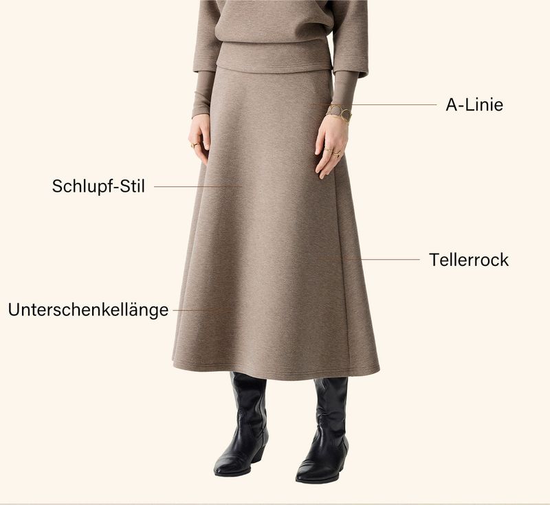 Dieser Tellerrock aus unserem Bestseller-Stoff wird Sie begeistern – er ist weich, fließend und schmeichelt der Figur auf ganzer Linie. Dank des bequemen, elastischen Bundes fällt er wunderschön und passt perfekt zu jedem Oberteil Ihrer Wintergarderobe.