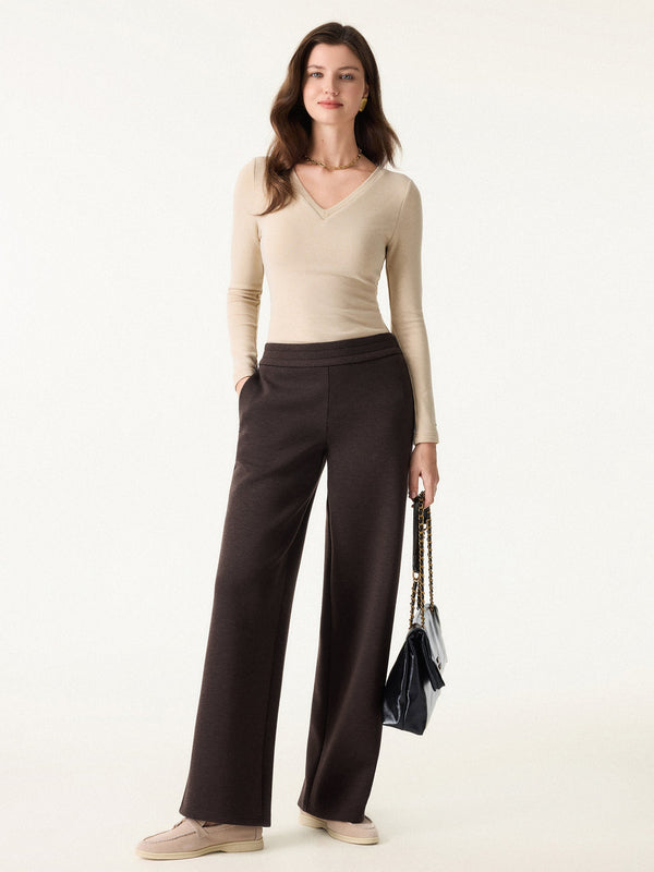 OGLmove - [Petite] FuzzLuxe Gemütliche, warme, hochgeschnittene Schlupfhose mit geradem Bein und Taschen 250925-2863W31