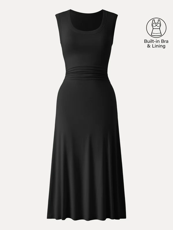 OGLmove - Eco-SkinKiss® Luftiges Brami-Midikleid mit U-Ausschnitt und seitlicher Rüsche 250620-2538W43