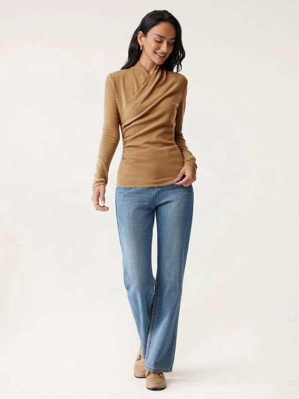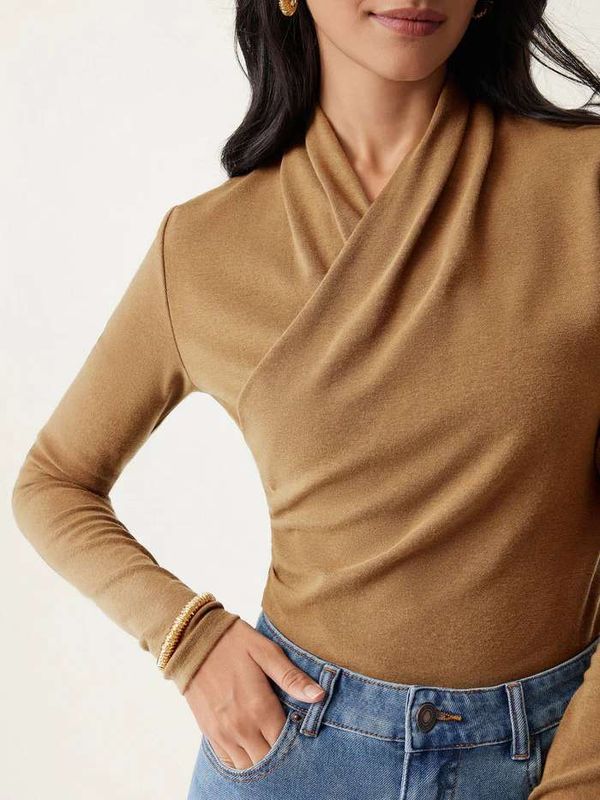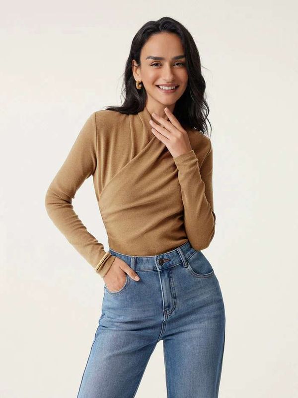 Dieses Eco-Mousse® Crossover-Langarmtop mit Rüschen ist eine schicke Wahl für jeden Tag. Der drapierte Ausschnitt umrahmt elegant das Gesicht und die figurbetonten, gerüschten Seitennähte betonen die Silhouette. Dank der leichten Thermoqualität ist es ideal für kühle Herbst- und Wintertage und die Langarm-Silhouette erleichtert das Outfit. Einfach eine Jeans dazu und schon ist es fertig.