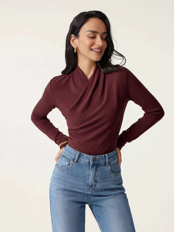 Dieses Eco-Mousse® Crossover-Langarmtop mit Rüschen ist eine schicke Wahl für jeden Tag. Der drapierte Ausschnitt umrahmt elegant das Gesicht und die figurbetonten, gerüschten Seitennähte betonen die Silhouette. Dank der leichten Thermoqualität ist es ideal für kühle Herbst- und Wintertage und die Langarm-Silhouette erleichtert das Outfit. Einfach eine Jeans dazu und schon ist es fertig.