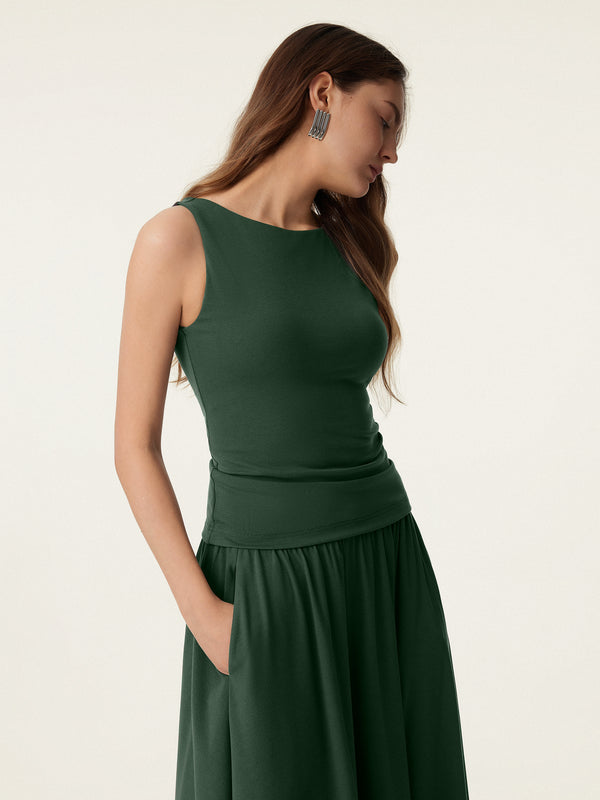 OGLmove - Leichte Baumwollrippe Brami Tanktop aus Stretch-Baumwolle mit U-Boot-Ausschnitt 250729-2615W22