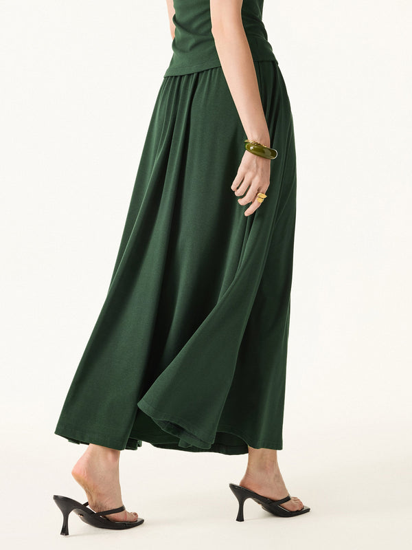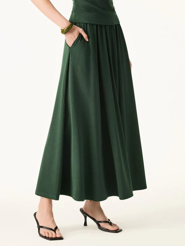 OGL - Leichte Baumwollrippe Maxi-Regenschirmrock aus Stretch-Baumwolle mit Taschen 250729-2616W33