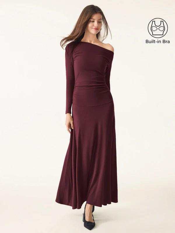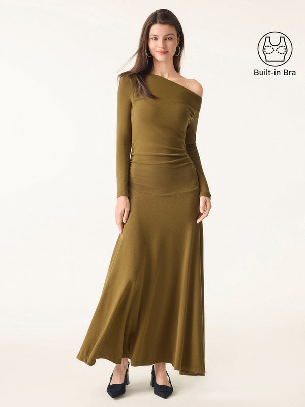 Sie werden dieses bequeme Kleid mit seinen schmeichelhaften seitlichen Raffungen und der knöchellangen Länge lieben. Das elegante One-Shoulder-Design macht es zum perfekten Kleid für einen Abend oder ein besonderes Date.
