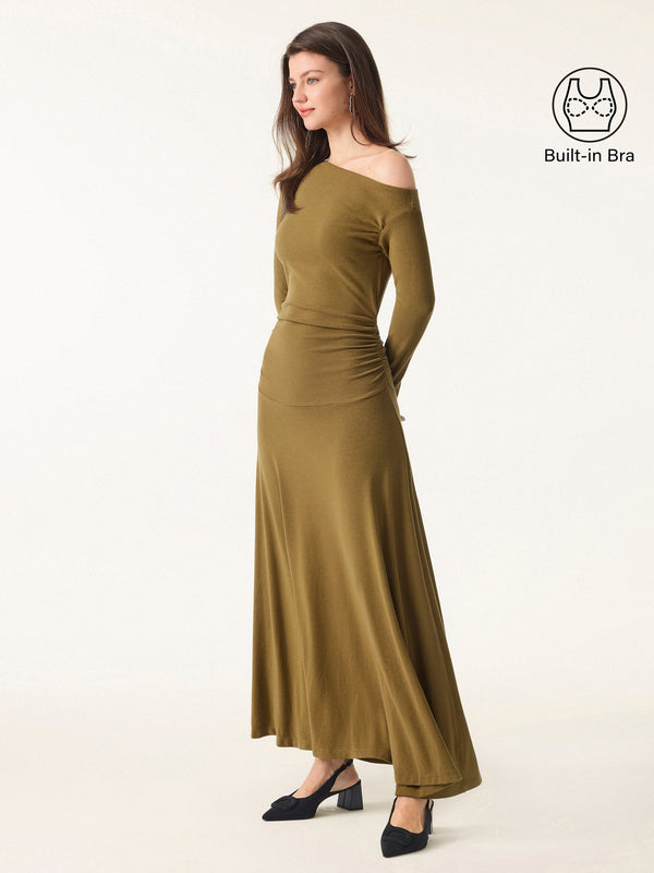 OGLmove - LeichtWärm Asymmetrisches Maxikleid mit seitlichen Rüschen an den Schultern und Knöcheln 250904-2757W44