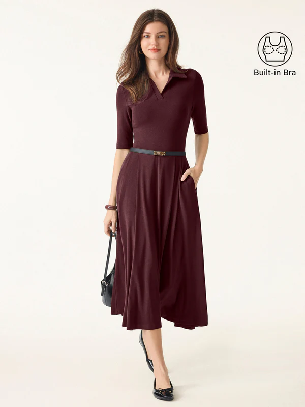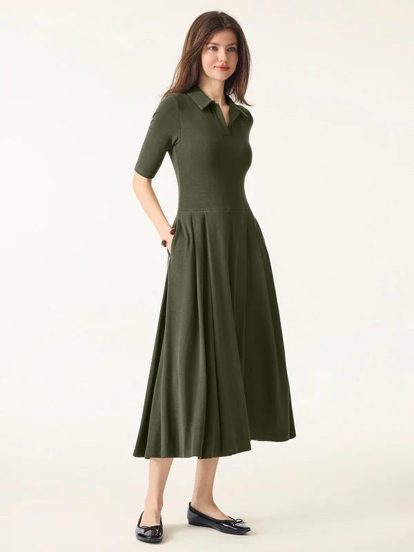 OGL - LeichtWärm Brami-Midikleid mit Polokragen, ellenbogenlangen Ärmeln und Taschen 250904-2759W43