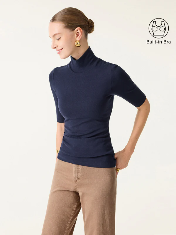 Ein Must-have für den Herbst, ein unverzichtbares Kleidungsstück für mühelosen Chic. Der hüftlange Schnitt mit Ärmeln bis zum Ellenbogen sorgt für einen eleganten Look, während die herausnehmbaren BH-Polster leichten Halt bieten und das Tragen erleichtern.