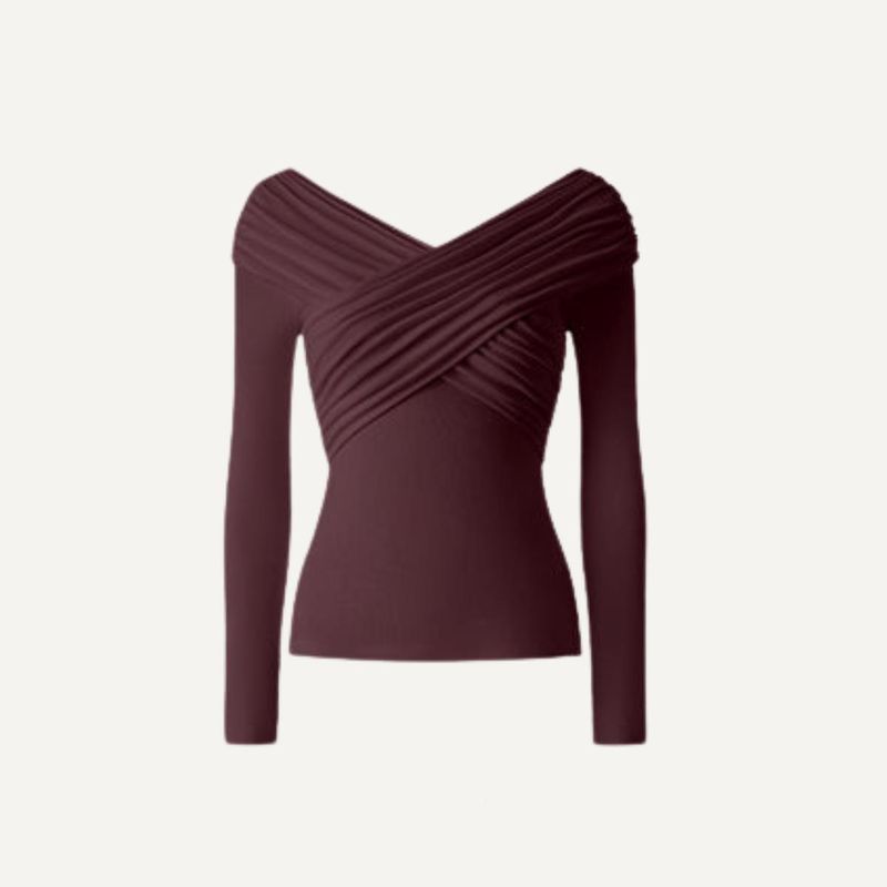 Dieses Top mit gerafftem V-Ausschnitt, der Ihre Schulter wunderschön betont, wird Sie begeistern. Dank der herausnehmbaren BH-Einlagen für optimalen Tragekomfort und Halt ist es das perfekte Highlight für Partys oder einen eleganten Ausgeh-Look.