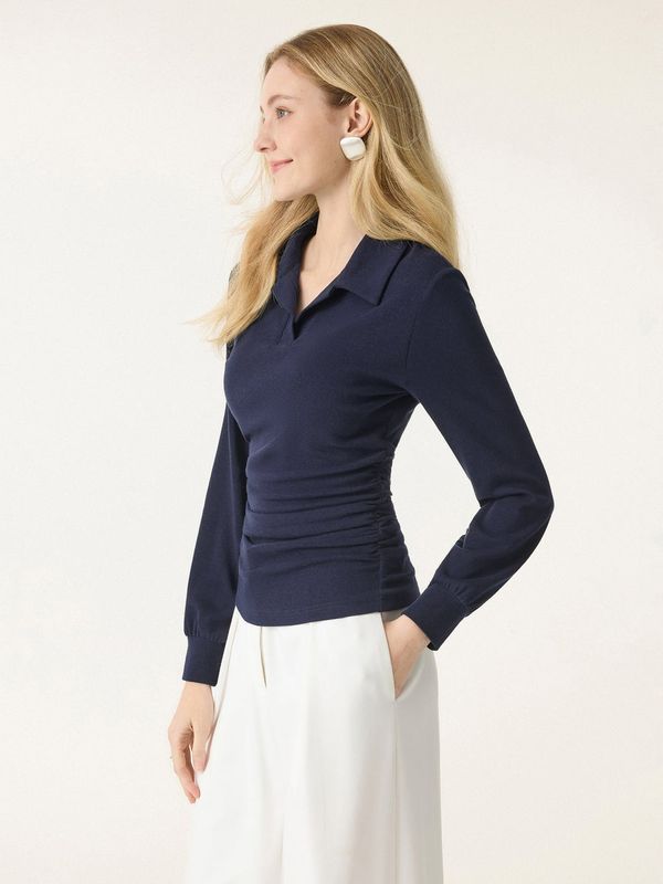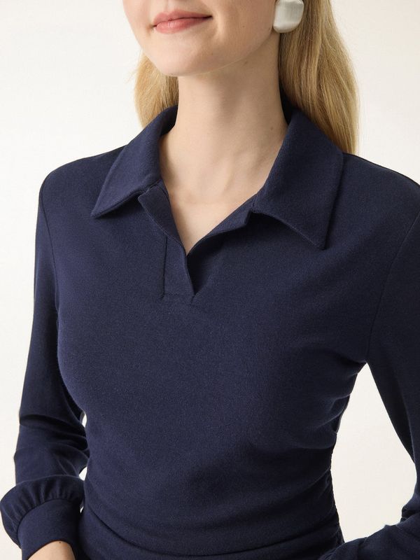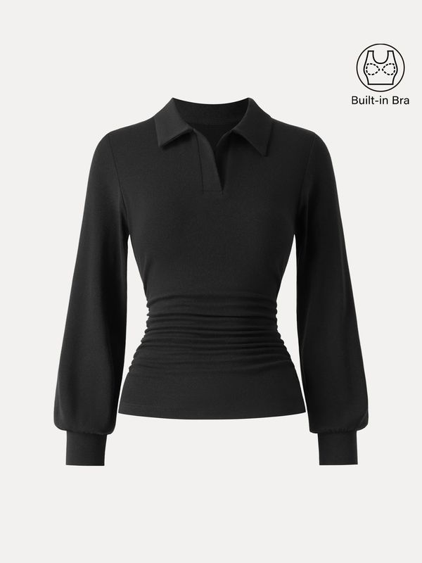 Sie werden begeistert sein, wie dieses elegante Poloshirt Ihr Alltagsoutfit aufwertet. Die schmale Passform und die geraffte Taille schmeicheln Ihrer Figur, während die Ärmelbündchen und der elegante Kragen es bürotauglich machen. Herausnehmbare BH-Polster sorgen für ein bequemes Tragegefühl den ganzen Tag.
