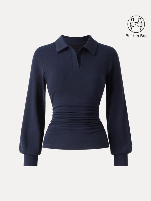 Sie werden begeistert sein, wie dieses elegante Poloshirt Ihr Alltagsoutfit aufwertet. Die schmale Passform und die geraffte Taille schmeicheln Ihrer Figur, während die Ärmelbündchen und der elegante Kragen es bürotauglich machen. Herausnehmbare BH-Polster sorgen für ein bequemes Tragegefühl den ganzen Tag.