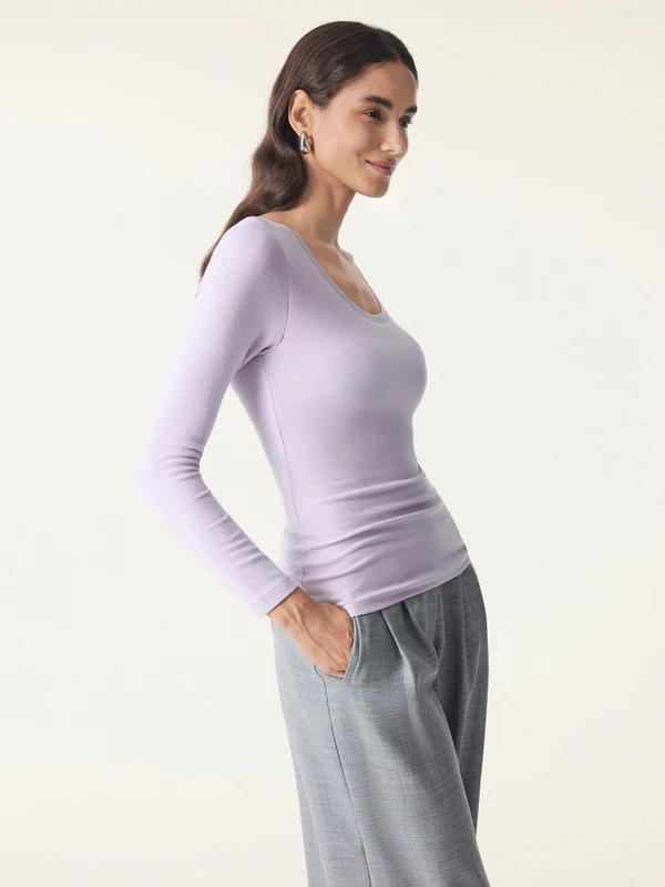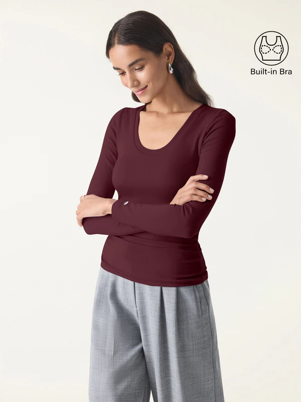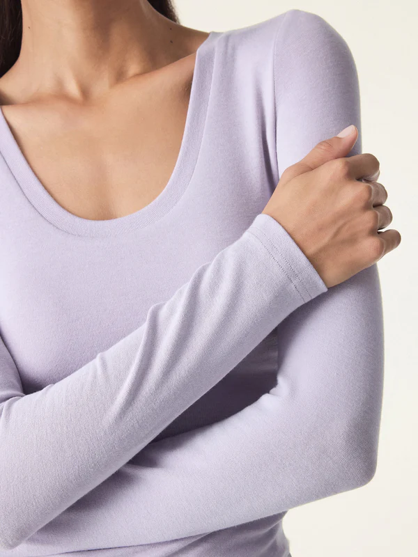 Dieses schmal geschnittene Rundhals-Top wird Sie als leichte und warme Schicht begeistern. Die hüftlange Passform und die klaren Linien verleihen ihm einen eleganten Look, während das Logodetail aus natürlicher Muschel und die herausnehmbaren BH-Polster für durchdachte Details und Alltagstauglichkeit sorgen.