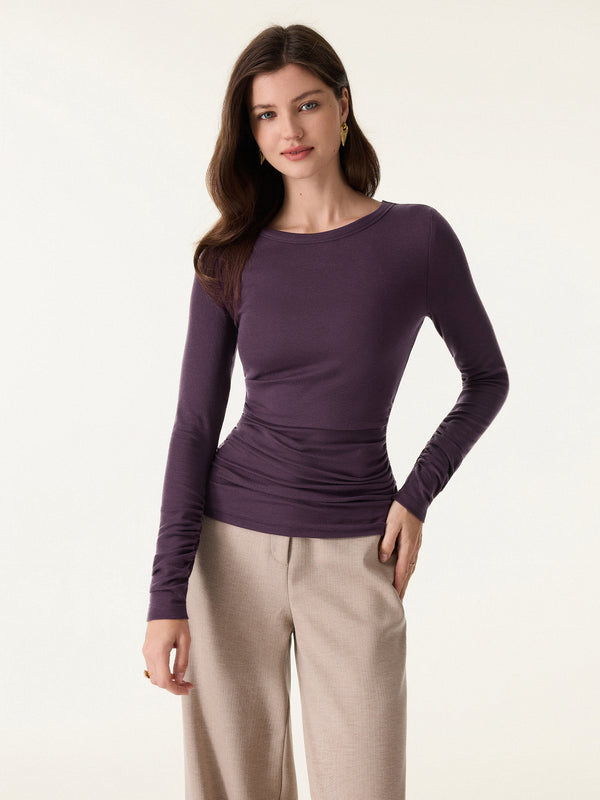 OGL LeichtWärm Lyocell-Kaschmir-Top mit gerafften Ärmeln und figurschmeichelndem Schnitt 250925-2851W24