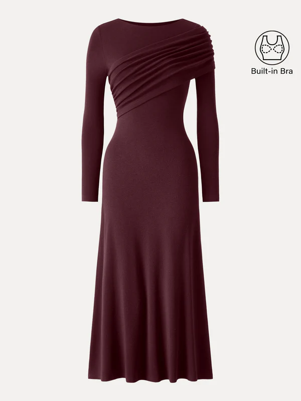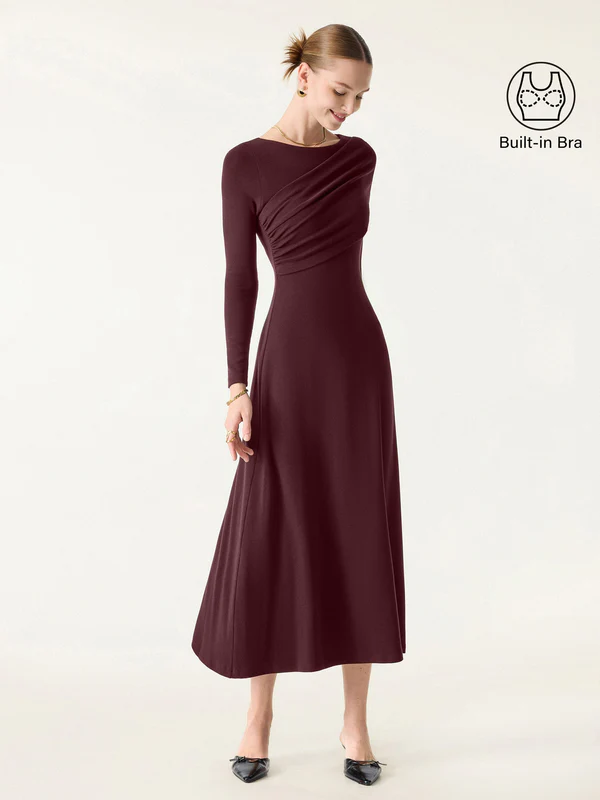 OGL - LeichtWärm Schickes gerafftes Midi-Brami-Kleid mit U-Boot-Ausschnitt 250922-2824W43