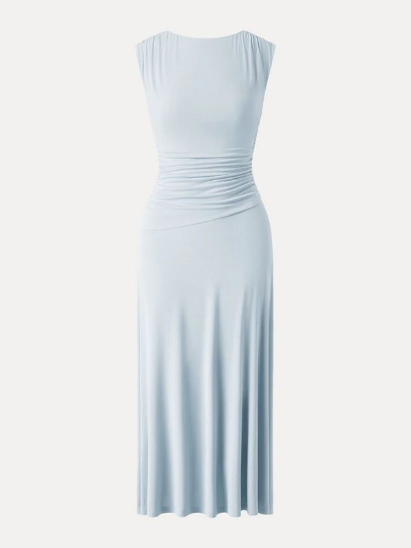 Der klassische Rundhalsausschnitt sorgt für einen zeitlosen Look, während das gerüschte Design Ihre Figur mit einem sanft modellierten Look betont. Dieses Maxikleid ist vollständig gefüttert und bietet so eine glatte Bedeckung. Es ist ein Must-have für jeden Anlass.