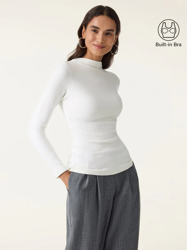 Sie werden dieses Rollkragenoberteil aus doppelt gebürstetem Plüschripp für zusätzliche Weichheit und Wärme lieben. Das dezente Muschel-Logo-Etikett verleiht dem Oberteil einen markentypischen Touch, während herausnehmbare BH-Polster für Halt und Tragekomfort sorgen.