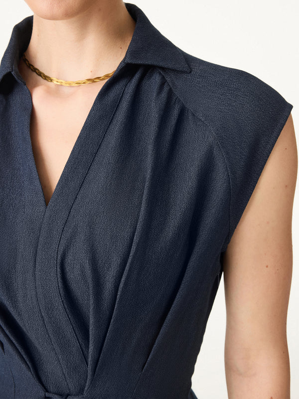 Dieses Midikleid reicht bis zur Wade und kombiniert einen V-Ausschnitt mit breiten Schultern für strukturierte Eleganz. Die selbstbindende Taille und dezente Biesen betonen Ihre Figur auf natürliche Weise. Ein schickes Teil für Ihre Sommergarderobe.
