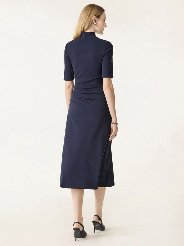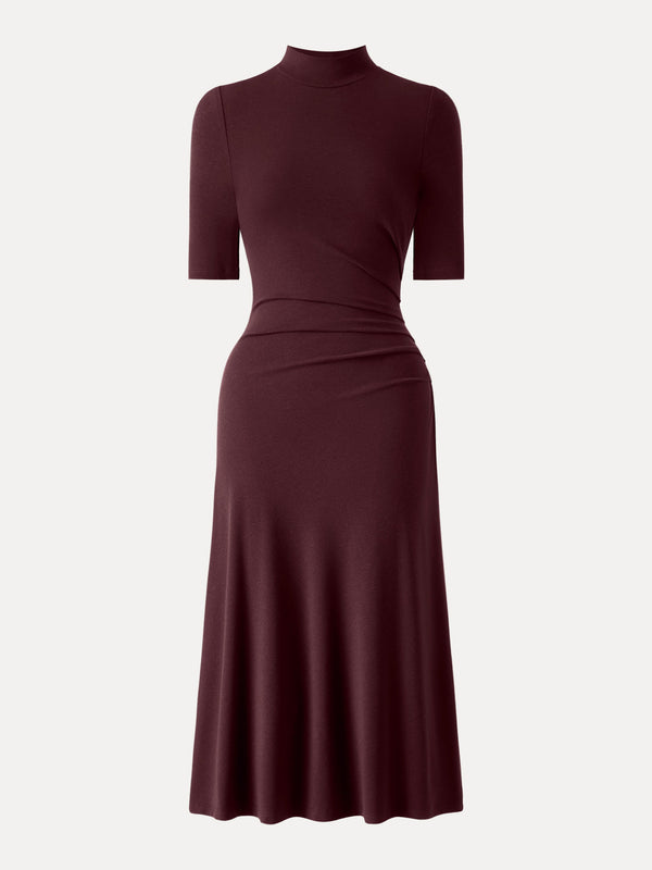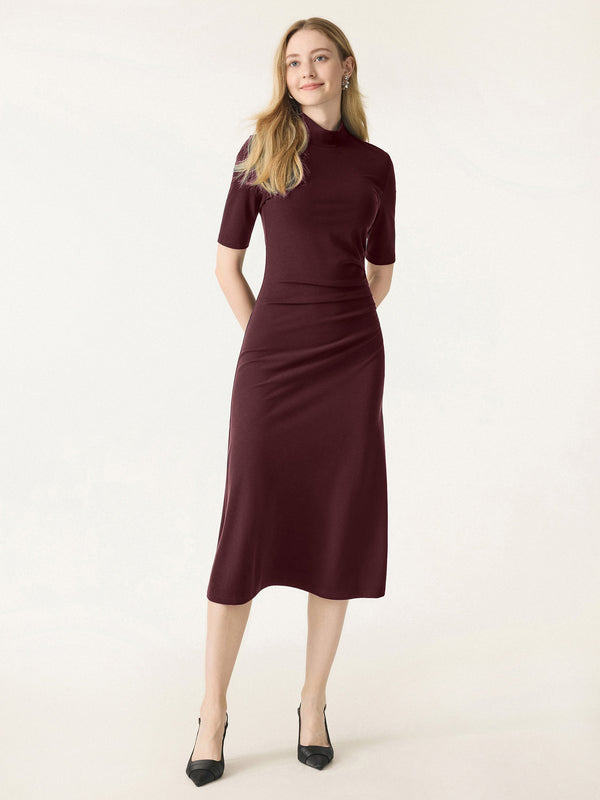Sie werden begeistert sein, wie dieses Midikleid mit Rollkragen mühelos Eleganz fürs Büro verleiht. Der wadenlange Schnitt und das Biesendesign sorgen für eine raffinierte Silhouette, während die Ellenbogenärmel das Kleid vielseitig und leicht zu kombinieren machen.
