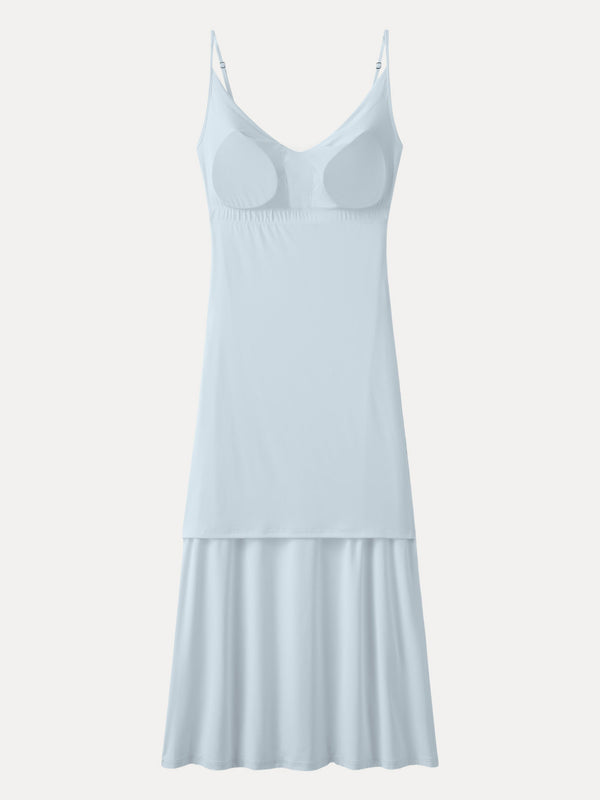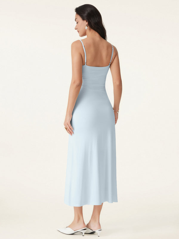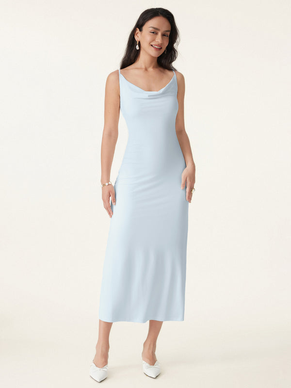 Dieses Midikleid mit weichem Wasserfallausschnitt, normaler Passform und durchgehendem Futter sorgt für ganztägigen Tragekomfort. Dank der integrierten, herausnehmbaren BH-Polster ist es ebenso schlicht wie elegant – das perfekte Kleid für jeden Urlaubsmoment.
