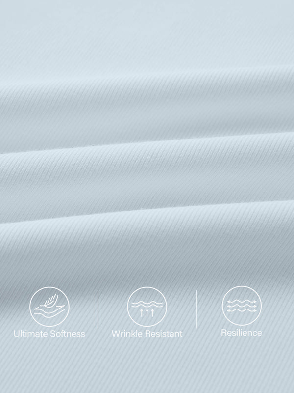 Aus weichem und dehnbarem, mattem Rippenstoff gefertigt, ist es ebenso zeitlos wie bequem. Es schmiegt sich an Ihre Figur und fühlt sich praktisch schwerelos an.