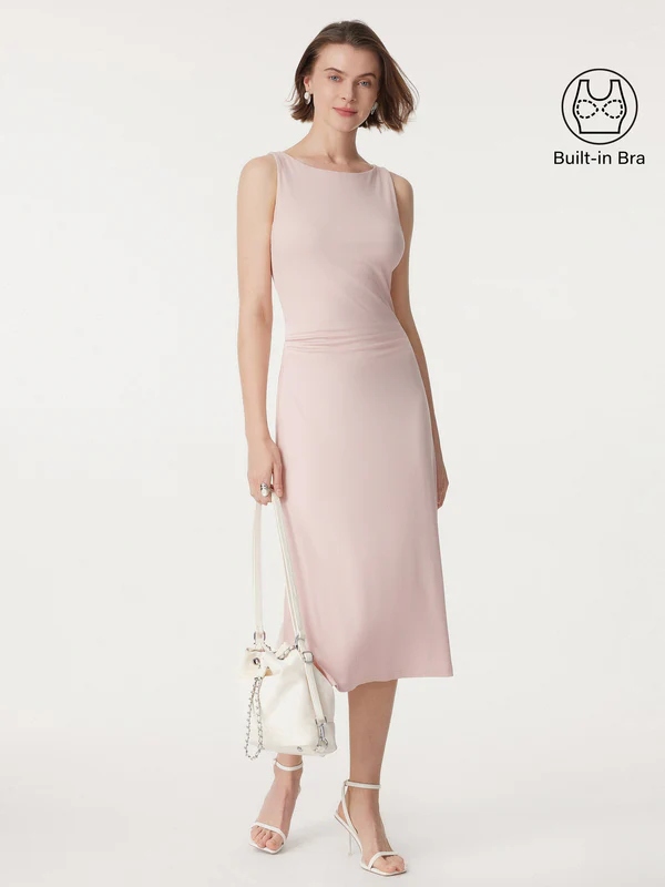 Das Boatneck Side Ruched New Airy Brami Midikleid vereint Komfort und elegante Zurückhaltung. Der schmeichelhafte Bootsausschnitt und die stilvolle seitliche Raffung betonen sanft die Silhouette und sorgen für ein luftiges, angenehmes Tragegefühl. Mit integriertem BH bietet das Kleid mühelosen Halt und eignet sich für zahlreiche Anlässe – vom entspannten Brunch bis zum Abendessen. Dank des leichten Materials lässt es sich vielseitig stylen: mit Heels für einen gepflegten Auftritt oder mit Sandalen für einen lässigen Look, der dennoch hervorsticht.
