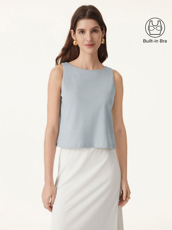OGLmove - Baumwollleinen Kurzes Brami-Tanktop aus Luxe-Baumwolle und Leinen mit U-Boot-Ausschnitt 250523-2430W22