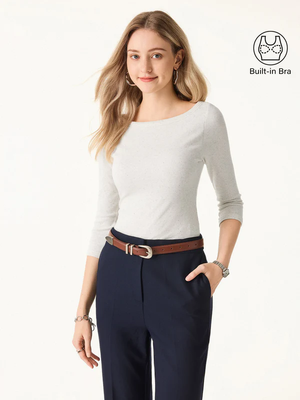 Sie werden begeistert sein, wie dieses Oberteil mit U-Boot-Ausschnitt Ihnen einen raffinierten, klassischen Look verleiht. Es sitzt direkt auf der Hüfte und ist mit Rippbündchen am Ausschnitt und an den Bündchen für einen schicken Touch versehen – plus herausnehmbare Polster für Komfort und Halt.