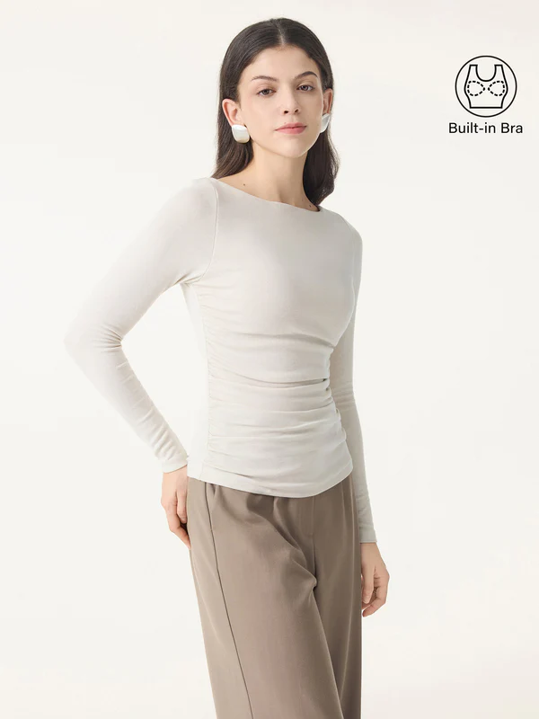 OGLmove - LiteWarm Light Warm Boatneck Ruched Brami Top 250822-2690W22