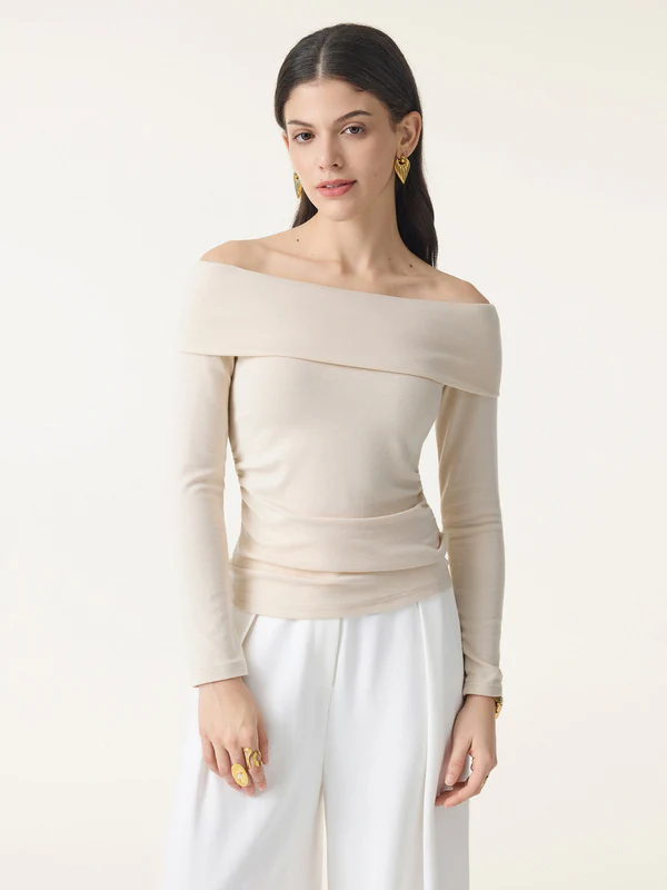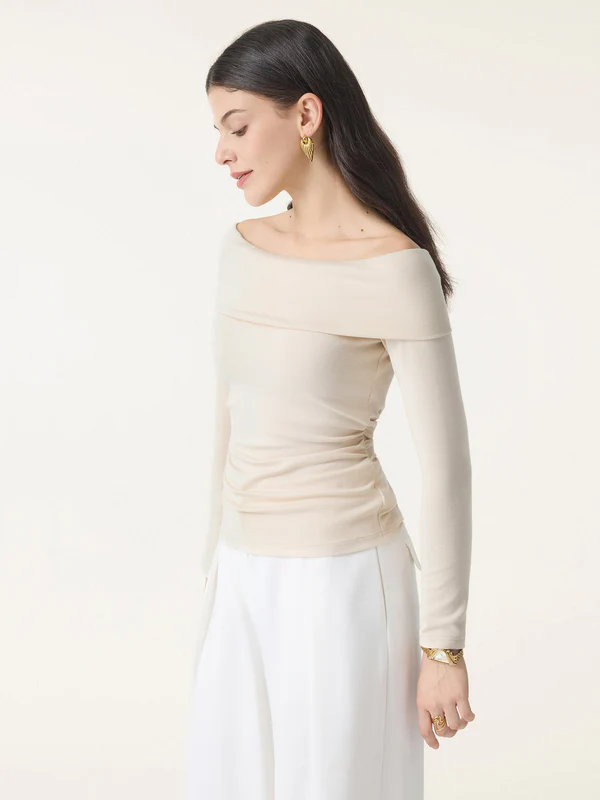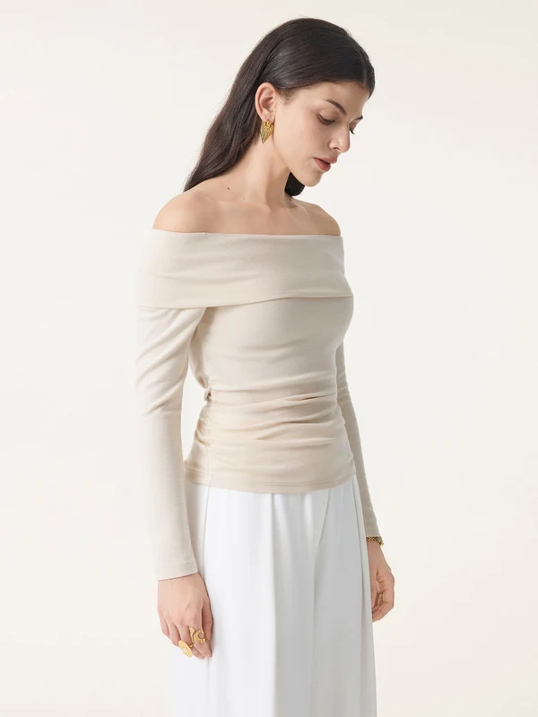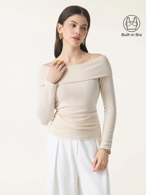 OGLmove - LiteWarm Off-Shoulder Long Sleeve Side Ruched Brami Top