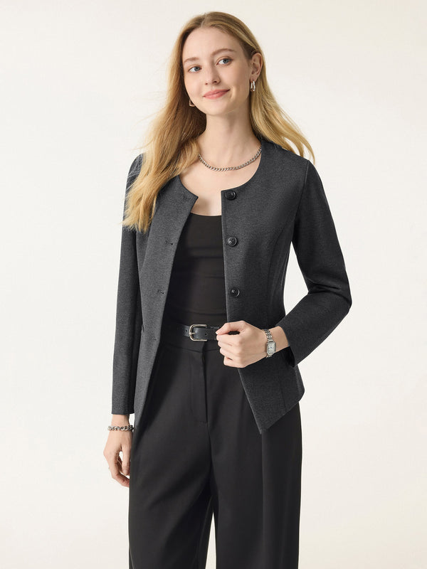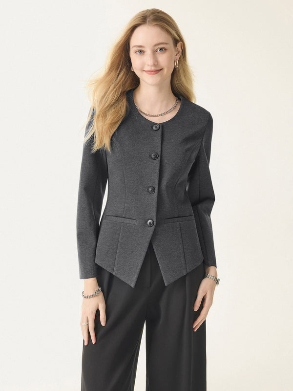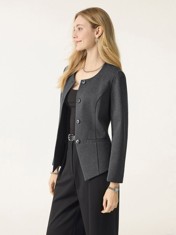 Sie werden diesen Blazer mit seinem schrägen Saum und der eleganten Knopfleiste lieben. Dank des Stretchanteils ist er bequem und professionell zugleich.