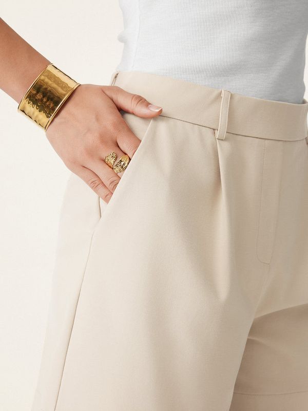 Sie verfügt über einen bequemen, elastischen Bund und lässt sich leicht überziehen. Biesendetails und Gürtelschlaufen sorgen für ein edles Finish. Schräge Vordertaschen und eine falsche Leistentasche hinten verleihen diesem vielseitigen Basic eine dezente Struktur.