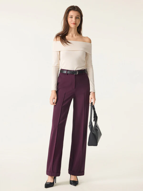 OGLmove - [Regular] Ponte De Roma Stretch-Ponte-Hose mit hohem Bund und geradem Bein und Biesen 250825-2707W31
